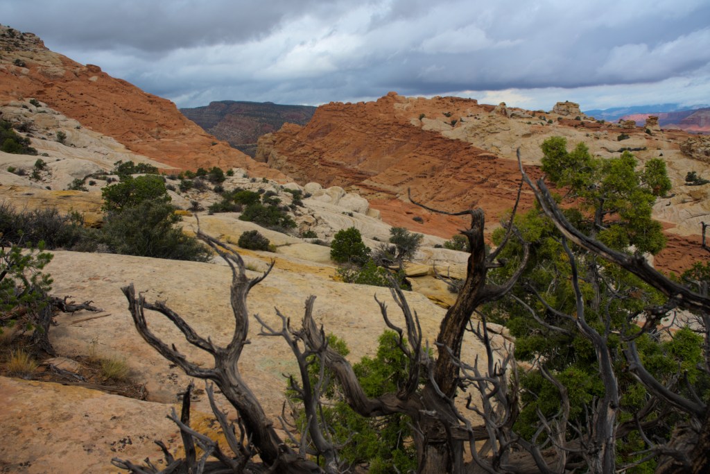 Heute sind wir in den Capitol Reef Nationalpark gefahren. Das ist eine grüne Oase mitten zwischen orangenen Felsformationen, was eine traumhafte und farbenfrohe Landschaft zur Folge hat. Hier befinden sich viele Obstplantagen, da das warme Klima und die Verfügbarkeit von Wasser durch den Fluss die optimalen Bedingungen ergeben. Außerdem gibt es hier die berühmten Obstkuchen und Zimtschnecken.