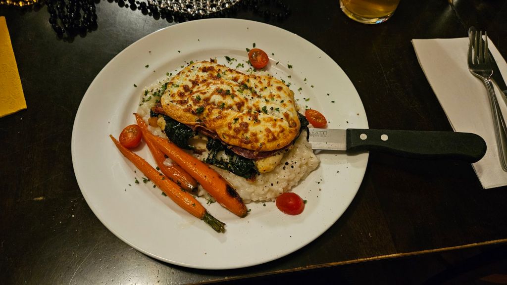 Am Abend waren wir dann in einem Italienischen Restaurant. Auf dem Tisch lag wunderschöne Deko. Party Hüte, Tröten, Glitzerketten, „Happy New Year“ Krönchen und Brillen.