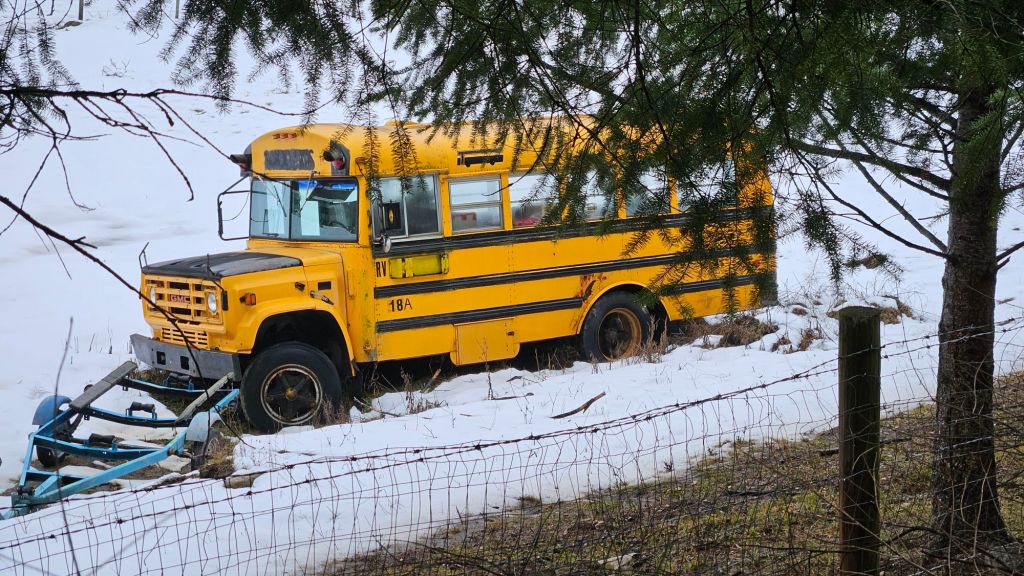 Außerdem habe ich noch diesen lustigen Schulbus in einem Hof stehen gesehen: