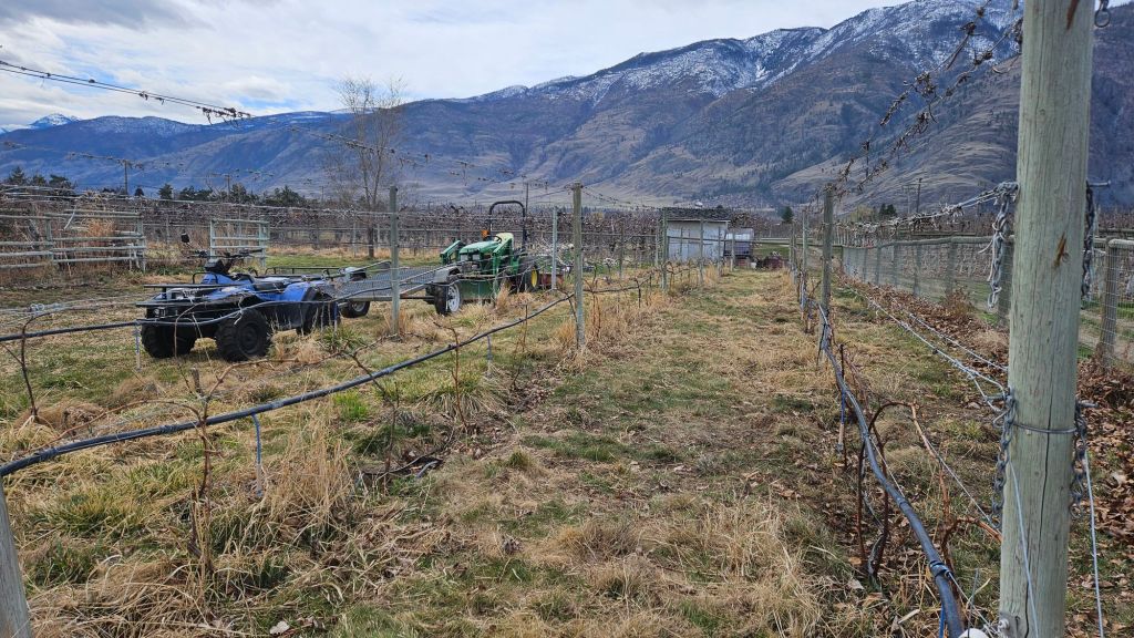 Diese Woche habe ich wieder mit Reben- und Obstbaumschneiden sowie dem „Erziehen“ der jungen Reben verbracht. Während so langsam die ersten Blumen anfingen zu blühen, hat es dann am Freitag unerwarteterweise nochmal bis ins Tal geschneit. Damit wir nicht schon mittags komplett durchgefroren und nass sind, haben wir in der Werkstatt die Decke gedämmt. Gegen Mittag war der Schnee dann aber auch schon wieder weg.
