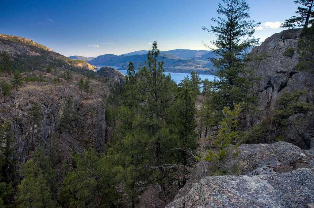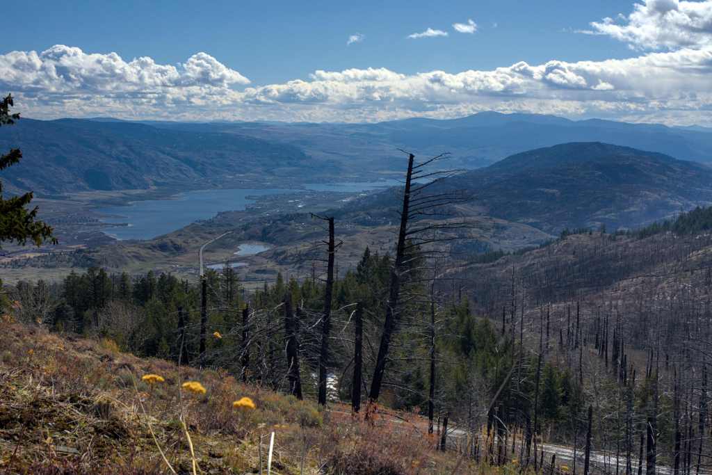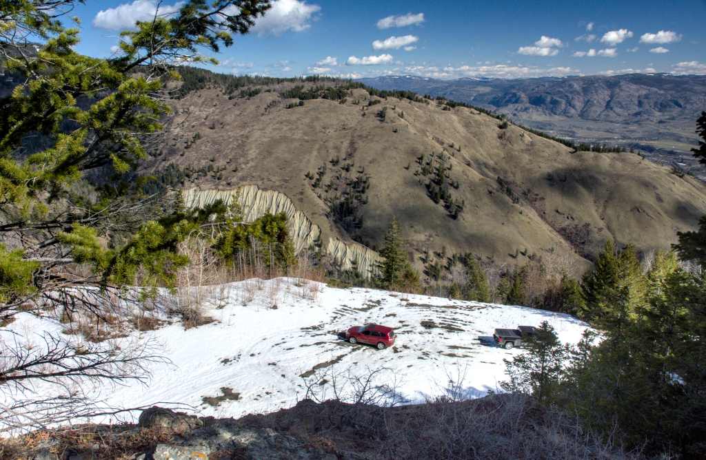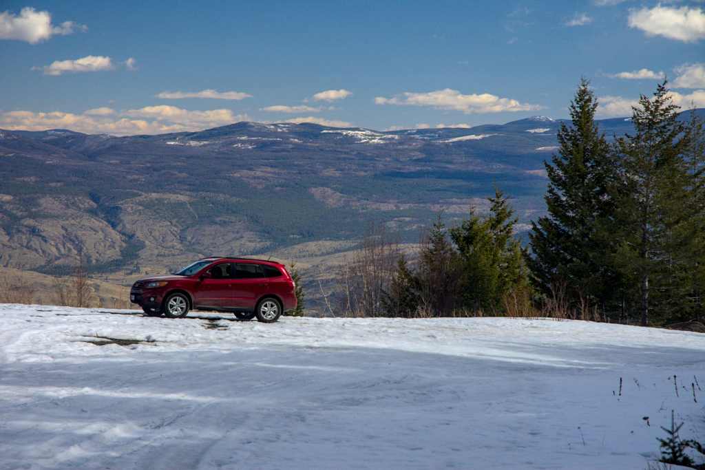 Weiter ging es auf den Mount Kobau. Hier fuhr ich einen kilometerlangen Feldweg hoch, während ich immer wieder atemberaubende Ausblicke auf das Tal genießen konnte. Bei einer Höhe von 1300m verwandelte sich der Schotterweg in eine Eisbahn. Da ich allein unterwegs war und keine Lust hatte, stecken zu bleiben, war meine Fahrt also vorzeitig zu Ende. Dennoch habe ich ein paar schöne Bilder gemacht.