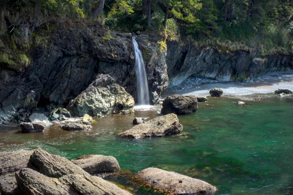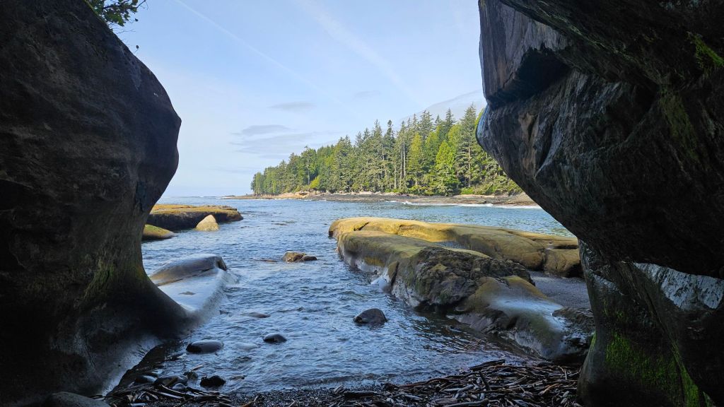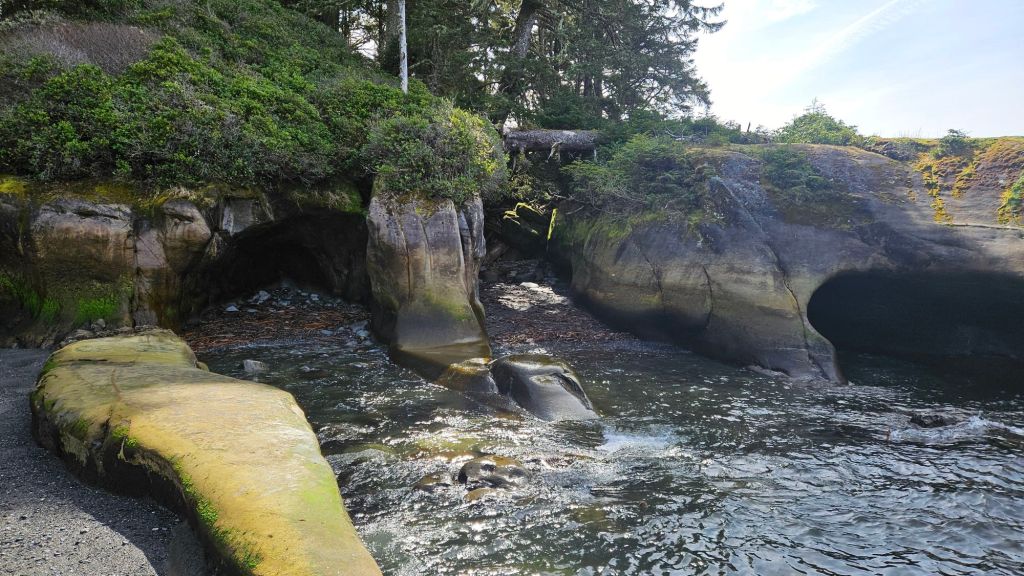 Unser nächster Campingplatz lag direkt am Strand in einer ziemlich ruhigen Bucht. Wir verbrachten dort aber erstmal nicht so viel Zeit und zogen weiter zum Botanical Beach. Ein Strand mit beeindruckenden Felsstrukturen. Dort wanderten wir mit einigen Kletterpassagen entlang der Küste. Plötzlich konnten wir einen Otter beim Fressen eines Fisches beobachten. Leider war er, nachdem er uns bemerkte, sehr scheu, sodass er nicht zurück zu seinem Essen kehrte, solange wir in der Nähe waren. Ich konnte dennoch ein gutes Bild erlangen.